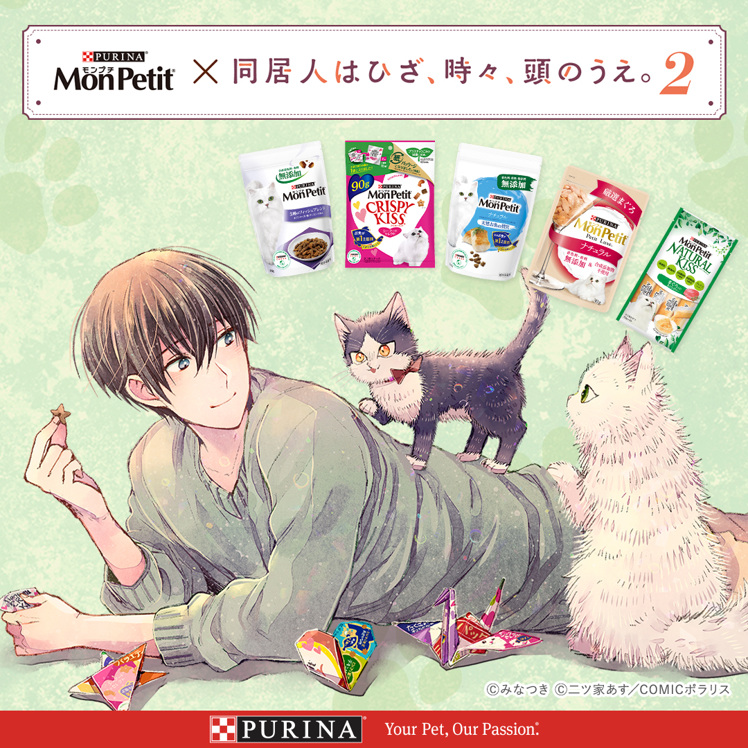 ふんわりと優しい絵柄、癒される猫達とのストーリー、人気声優さんの起用も話題の人気作品「同居人はひざ、時々、頭のうえ。」と、あのモンプチのコラボがスタート!